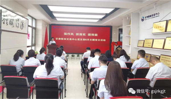 近日,甘肃股权交易中心党支部召开“强作风,抓落实,提效能”主题党日活动。支部书记樊亚娟主持会议,全体党员及员工参加。