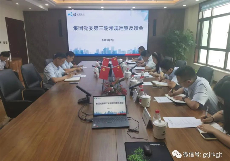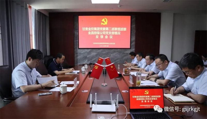 党委巡察工作领导小组的安排,2023年7月14日至17日,集团党委第一、第二巡察组分别向甘肃征信党支部、金控自然生态党支部、金控再贷款党支部、金控金昌担保党支部反馈巡察情况。巡察组长代表巡察组向四家党组织领导班子进行了反馈,被巡察党组织负责人主持会议并作表态发言。