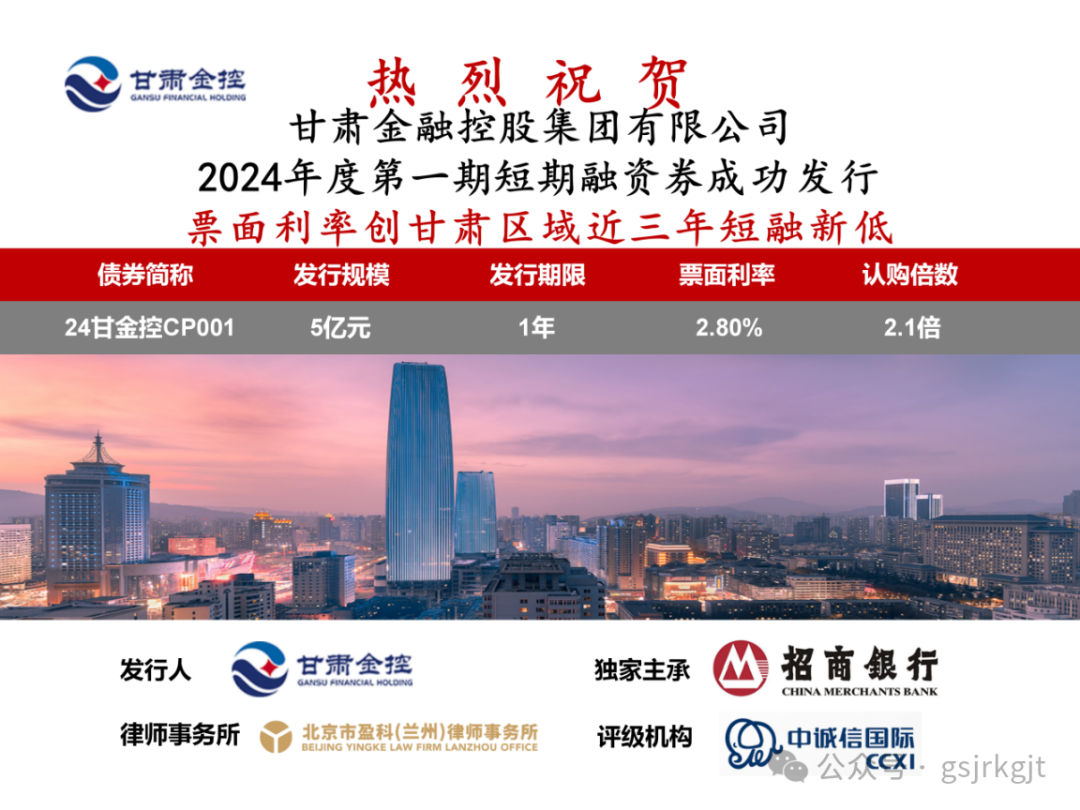 2024年2月6日,压球手机在线官网-压球(中国) 成功发行2024年度第一期短期融资券,发行规模5亿元,债券期限一年,票面利率2.80%,债券票面利率创甘肃区域近三年同品种债券利率新低。