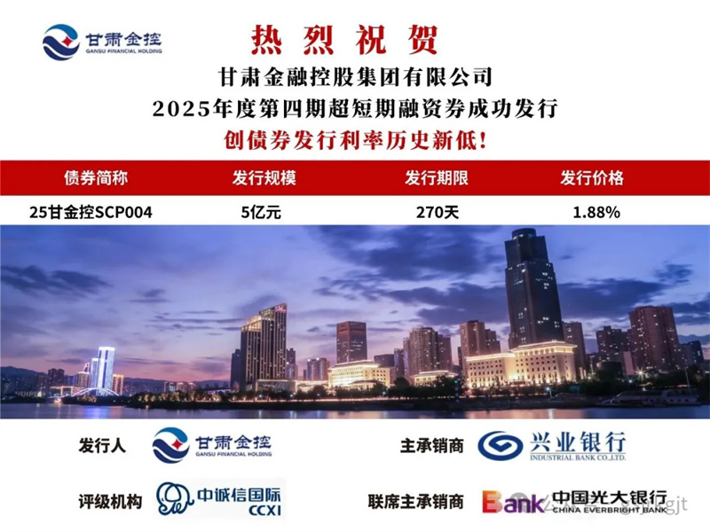 2025年6月26日,压球手机在线官网-压球(中国) 成功发行2025年度第四期超短期融资券“25甘金控SCP004”,规模5亿元,期限270日,票面利率1.88%,创集团债券发行利率历史新低,有助于集团降低融资成本。