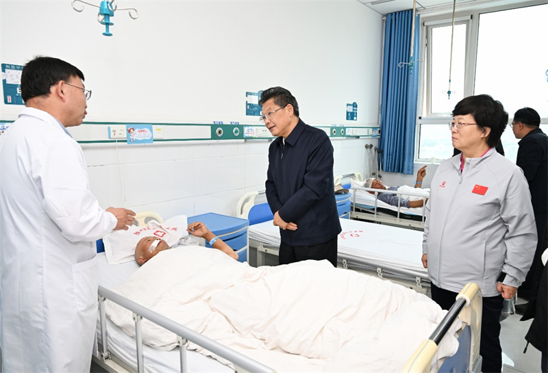 任振鹤还来到陇西县第二人民医院,看望这里收治的受伤群众,了解救治情况。他强调,要精心开展后续治疗工作,及时做好情绪疏导和心理抚慰,争取让伤员早日康复回家。