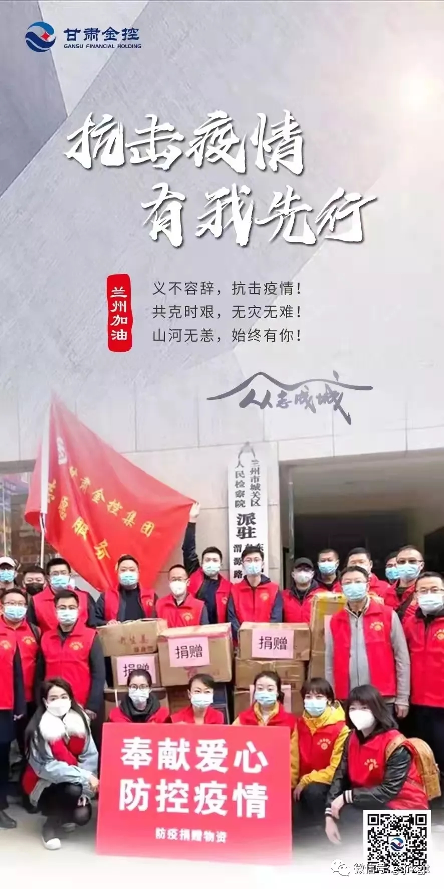 十月的金城,还没来得及走出国庆的喜悦,突袭而至的“德尔塔”病毒让整个城市按下了“暂停键”,车水马龙的兰州市显得格外静寂,美丽的黄河之滨也略失姿色,唯有满城鲜红的党旗给人以信念,白衣铠甲的逆行者给人以信心,“兰州加油、抗疫必胜”的强音不断响彻金城大地。十月“抗疫之战”打响以来,全省各行各业主动扛起责任,医护人员昼夜奋战、公安民警奋勇当先,国企勇挑重担,民企积极出力,科研人员奋力攻关,党员干部投身志愿一线,全城的每一个人都在竭尽全力为抗疫贡献自己的一份力量,共同描绘着一幅同舟共济的抗疫画卷。陇原融资租赁公司就是这其中的一支队伍,在压球手机在线官网-压球(中国)