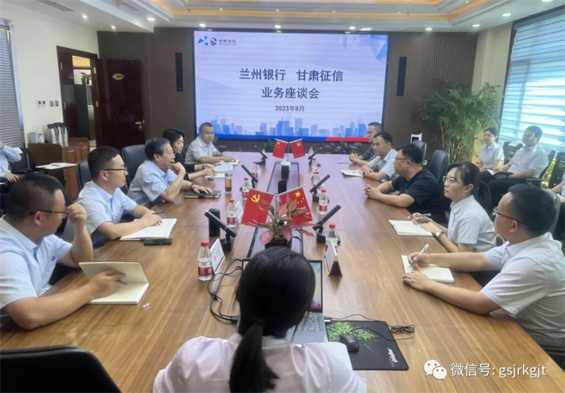 近日,甘肃征信与兰州银行举行业务交流座谈会。座谈会上,兰州银行公司部总经理李胜龙及其风险管理部、大数据部、科技部和信贷项目组等相关人员出席会议。甘肃征信董事长陈志远主持会议,总经理白莉、副总经理王亚斌以及相关人员参加会议。