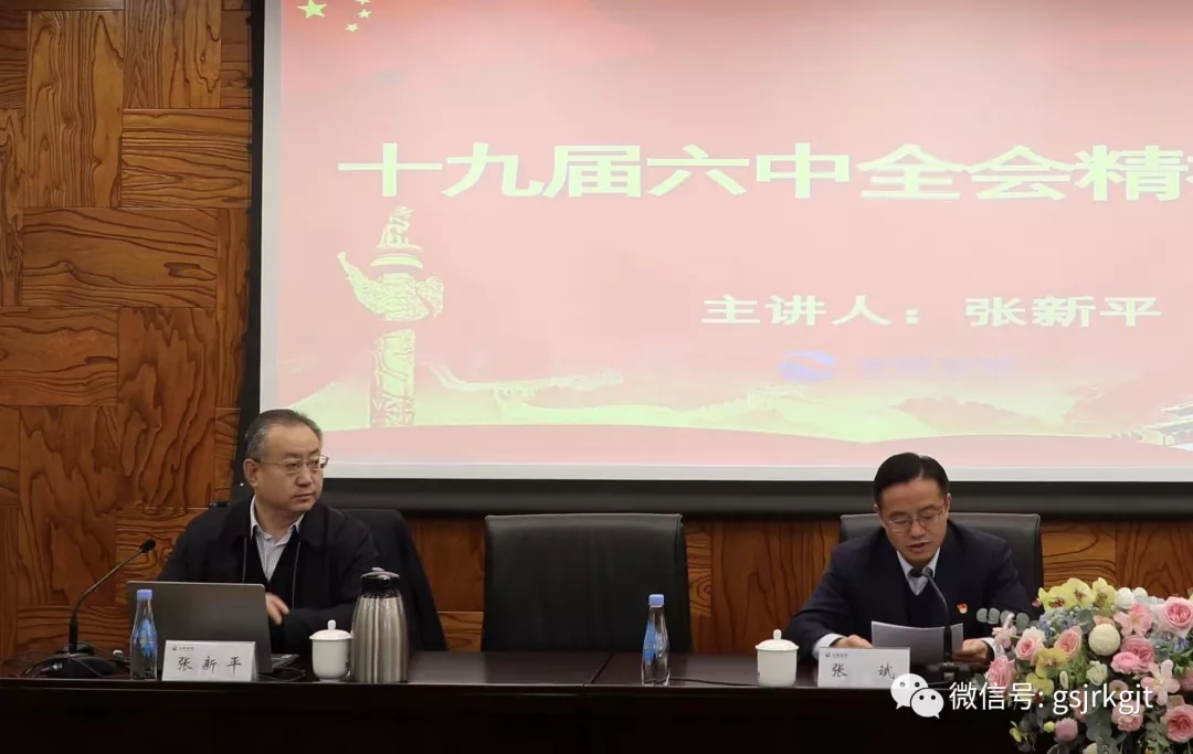 邀请兰州大学马克思主义学院张新平教授,举办十九届六中全会精神专题辅导讲座。集团党委书记、董事长祁建邦及在家班子成员参加讲座。集团党委副书记、工会主席张斌主持并讲话。