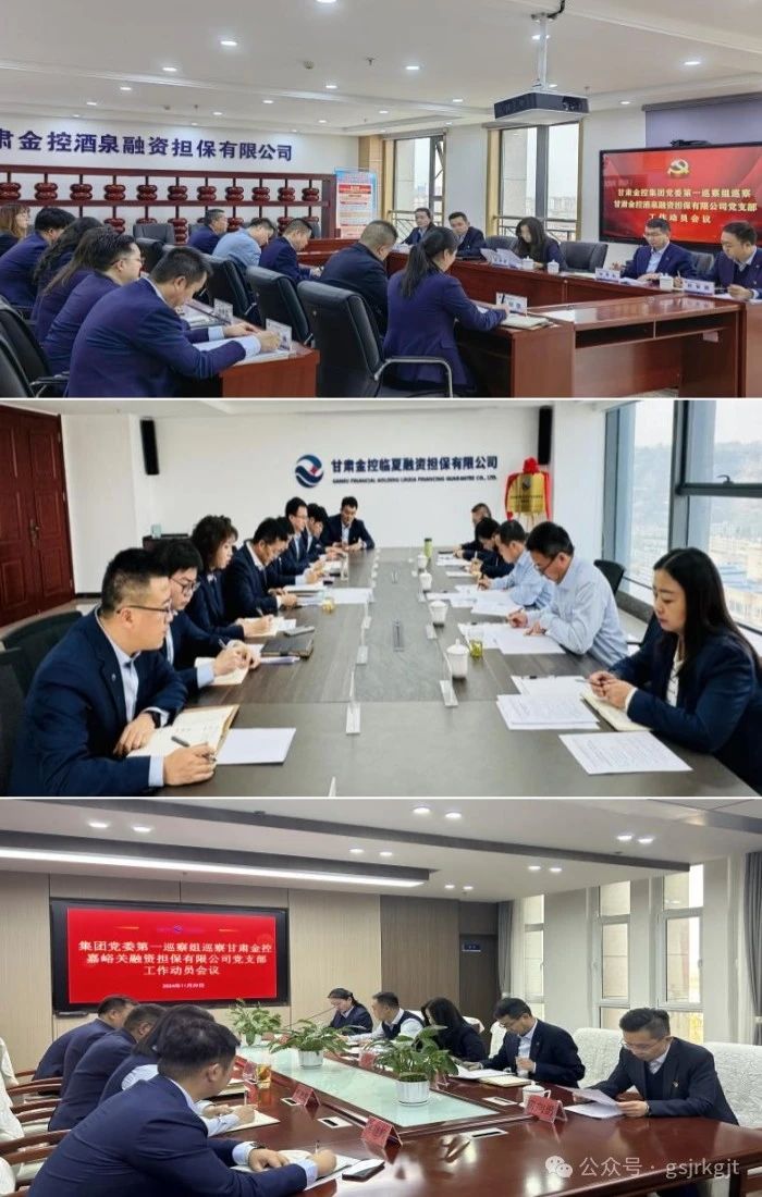 根据集团党委巡察工作统一部署,集团党委第一、第二巡察组于近期分别进驻金控酒泉、临夏、嘉峪关担保党支部开展巡察,被巡察单位分别组织召开巡察进驻动员会。会前,各巡察组组长主持召开与被巡察党组织负责人的见面沟通会,传达集团党委巡察工作有关精神和要求,通报巡察任务和工作安排,听取被巡察党组织负责人意见。会上,各巡察组组长作动员讲话,对学习贯彻习近平总书记关于巡视工作的重要论述,扎实开展巡察工作提出要求。