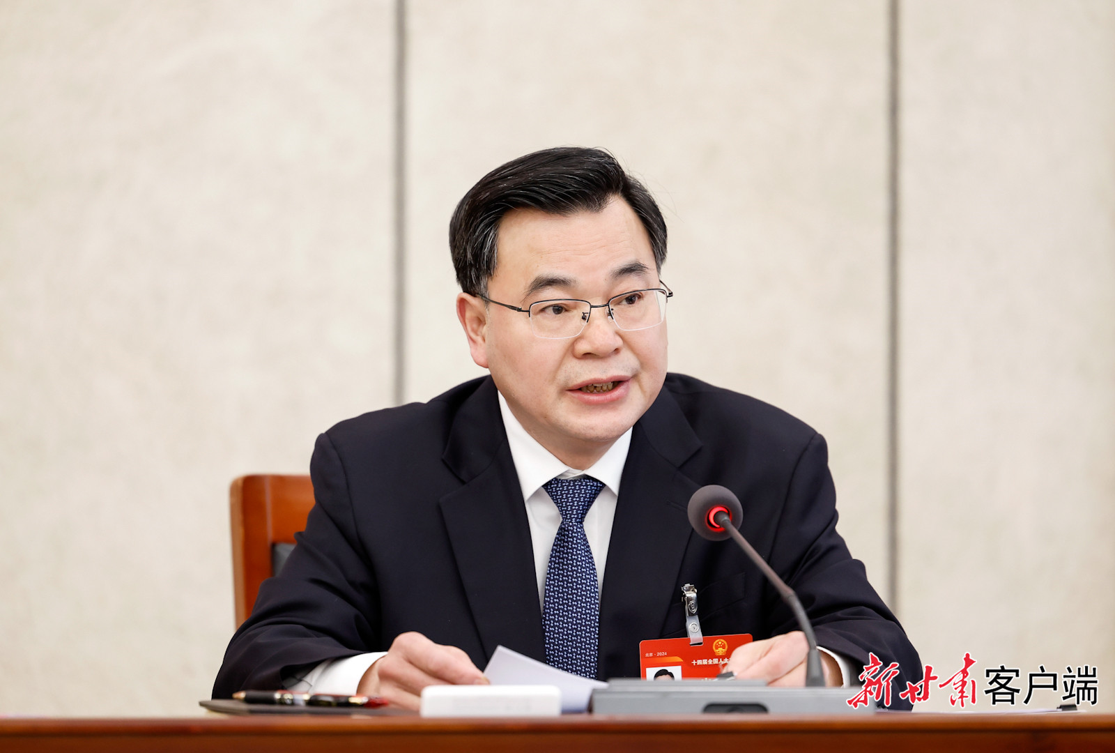 3月5日,全国人大代表、省委书记、省人大常委会主任胡昌升在甘肃代表团审议李强总理所作的政府工作报告。(记者孟捷)