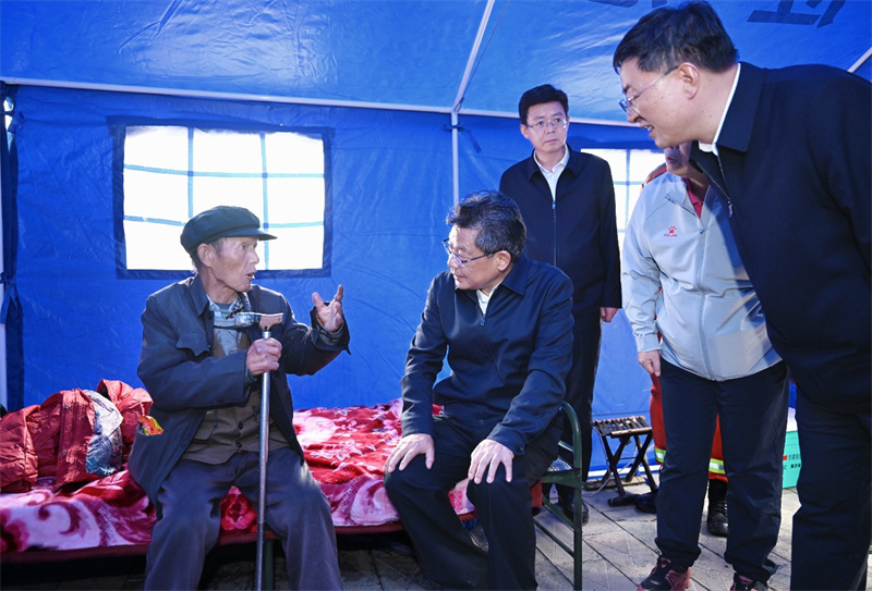 在文峰镇桦林村,任振鹤深入震中,实地察看房屋、道路等受损情况,来到安置点看望受灾群众,随后在临时指挥部主持召开会议,与省军区、省直相关部门及定西市、陇西县、文峰镇等负责同志进行会商研判,安排部署下一步工作。他指出,地震发生后,各级各相关部门闻“震”而动、行动迅速,第一时间开展抗震救援、排险除险工作,奠定了重要基础。要坚持“省级指导、市县统筹、各方支持、群众参与”,强化统一调度,落实责任、整合资源,以科学有效的指挥、周密完备的部署,继续做好抗震救灾各项工作。要全面排查风险隐患,加强余震监测预警,聚焦农房、学校、养老院、卫生院、水库、道路、工矿、桥涵、地质灾害点等可能受地震影响的重点部位,不漏一户、不落一处,早发现、早处置,有安全风险的及时转移,严防发生次生灾害。要妥善安置受灾群众,按照“五有”要求保障好群众基本生活,让受灾群众感到踏实、安稳、温暖。要抢通保畅基础设施,紧盯水、电、路、讯,全力做好排查抢修等工作,推动尽快恢复正常生产生活秩序。要迅速开展抗灾自救,用好各方救援力量,引导动员群众做好农房修复、废墟清理等工作。要切实增强抗震意识,进一步完善应急预案,加强防震减灾安全知识宣传,不断提升群众防灾减灾意识,减少灾害带来的人身安全、经济财产损失。