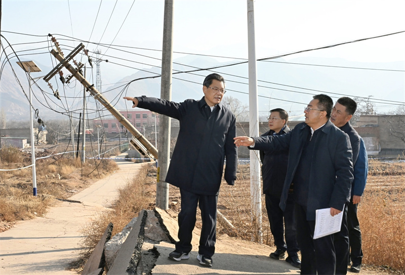 12月17日,省委副书记、省长任振鹤在永靖县调研滑坡险情处置工作。(新甘肃·甘肃日报记者盛学卿)