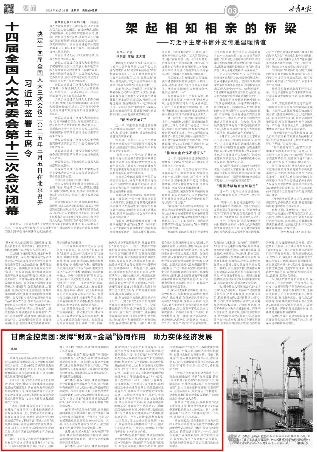 加大信用信息归集,推进政府采购、财政奖补等数据与“陇信通”平台数据深度融合,累计完成数据入库超2.65亿条,覆盖经营主体超过238万户。不断优化完善“陇信通”平台功能,通过为企业征信画像,实现与金融机构精准对接。目前,“陇信通”平台入驻金融机构139家、注册企业4.9万户,新增撮合融资750.68亿元,较2023年同期增长261.92亿元,增幅达53.59%。