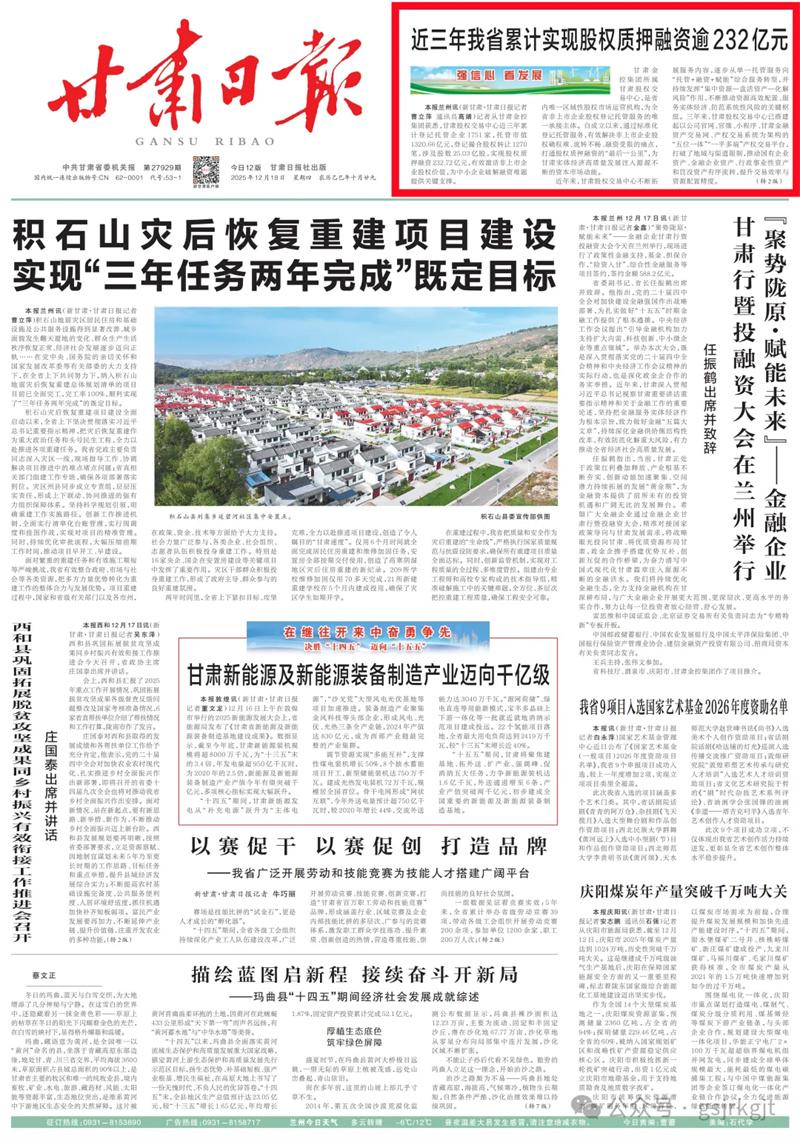 值得一提的是,为进一步加强与全国性证券市场的互联互通,甘肃股权交易中心承接运营“北交所、全国股转系统甘肃服务基地”,为我省“专精特新”专板企业开通新三板挂牌审核“绿色通道”,构建起“专精特新培育-专板孵化-新三板挂牌-北交所上市”的全链条培育体系。2024年,甘肃股权交易中心获批“专精特新”专板,进一步提升企业多层次资本市场服务专精特新中小企业的能力。