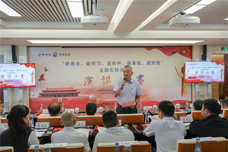 金控集团党委书记、董事长,华龙证券党委书记、董事长陈牧原致辞,指出在这个特殊的日子里,我们开展主题党日活动和演讲比赛,恭贺中国共产党成立99周年,意义重大。同时强调,集团党委针对经营管理中显现的一些问题,在全系统开展“转观念、破积习、追标杆、强基础、提效能”主题实践活动,倡导广大员工以自我革新的勇气,破除企业行政化、机关化的积习陋习,树牢市场经营观念,对照标杆,俯身抬头干实事,提高效能强执行,勇于进取,奋勇争先,创造更好的业绩,为党旗添彩,为党的生日献礼。