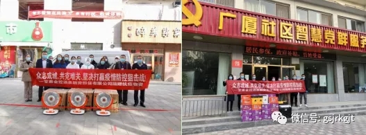 在全省疫情防控处在最吃劲的关键阶段,金控集团组织兰内子公司成立志愿服务队,全力投入疫情防控工作,第一时间向街道社区和帮扶点捐赠医用防护物资和消杀保暖物资共计22.4万元。其中,防护服防护目镜2320套、医用手套3000双、口罩64600个;医用酒精2860瓶、消毒液200瓶、消杀喷壶100个:保暖手套900双、插电式暖手宝300个、暖宝贴3000贴、电暖器5台。