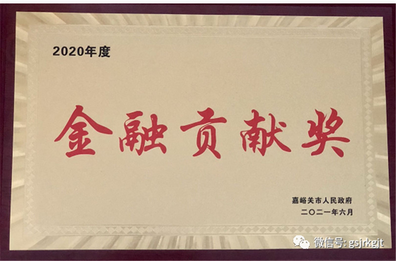 金控嘉峪关担保荣获嘉峪关市2020年度金融贡献奖