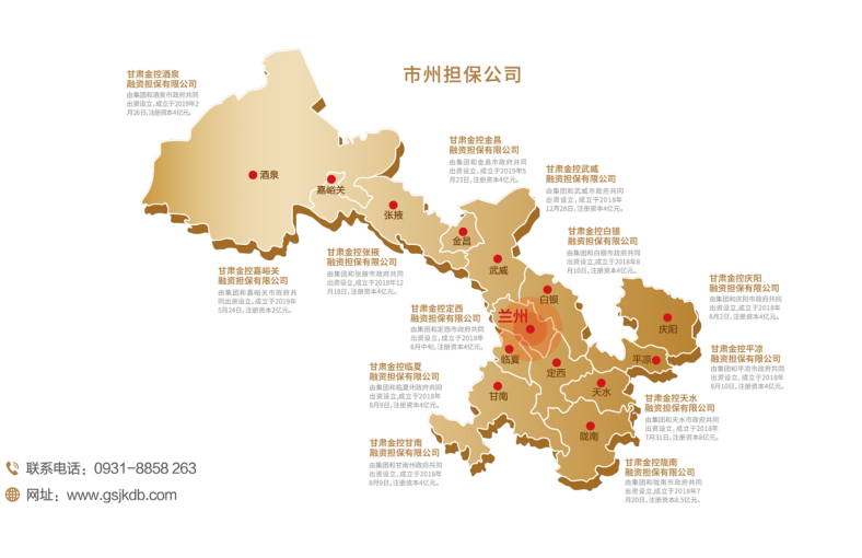 发起,经甘肃省地方金融管理局核准而设立的省级政府性融资担保机构,甘肃省人民政府确定的省级融资再担保机构,国家融资担保基金签约合作单位。连续四年资本市场主体信用AAA评级为稳定,连续五年荣获甘肃省“省长金融奖”,被评为甘肃省先进基层党组织、省属企业党建融入生产经营典型创建示范点、“万企兴万村”甘肃行动典型金融机构、首届“甘肃社会责任企业”。